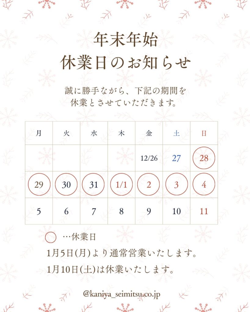 年末年始休業日のお知らせ
